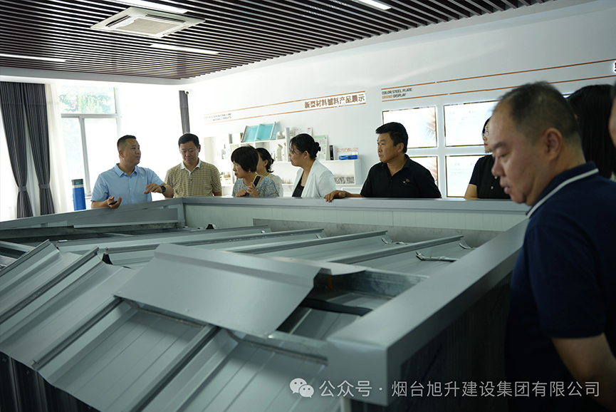 隨后邵傳鵬陪同市區各級領導、各企業負責同志一行人參觀了旭升集團科技產品展廳,并介紹了的旭升集團自發研制的最新科技產品,包括廠房通風防滲、墻面保溫等領域的產品。